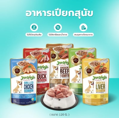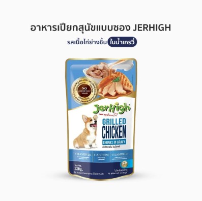 อาหารเปียกสุนัขแบบซอง JerHigh เนื้อไก่ย่างชิ้นในน้ำเกรวี่ (120 gป อุดมไปด้วยคุณประโยชน์จากวัตถุดิบที่ผ่านกระบวนการคัดสรรอย่างพิถีพิถัน