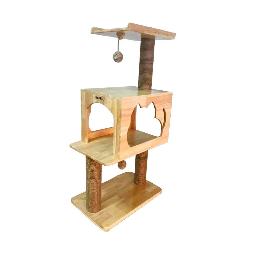 HugCat คอนโดแมวทำจากไม้เชือกฝนเล็บ 3 เสา