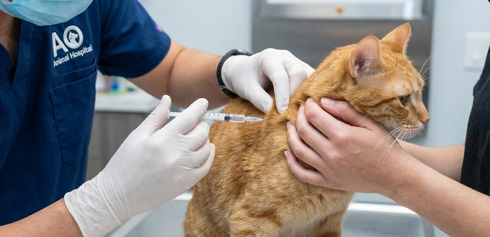 ใครว่าพาแมวมาฉีดยาต้องเป็นเรื่องใหญ่? ที่ AO Animal Hospital เราเข้าใจว่าน้องแมวมีความไวต่อความรู้สึก คุณหมอมือเบา เทคนิคดี จิ้มปุ๊บเสร็จปั๊บ มีผู้ช่วยรู้วิธีจับบังคับแบบนุ่มนวล (Cat Friendly Handling) บรรยากาศเงียบสงบ ลดความตื่นกลัวให้น้องแมว . อยากให้น้องฉีดวัคซีนแบบชิลล์ๆ ไม่ดราม่า แวะมาหาเรานะครับ
